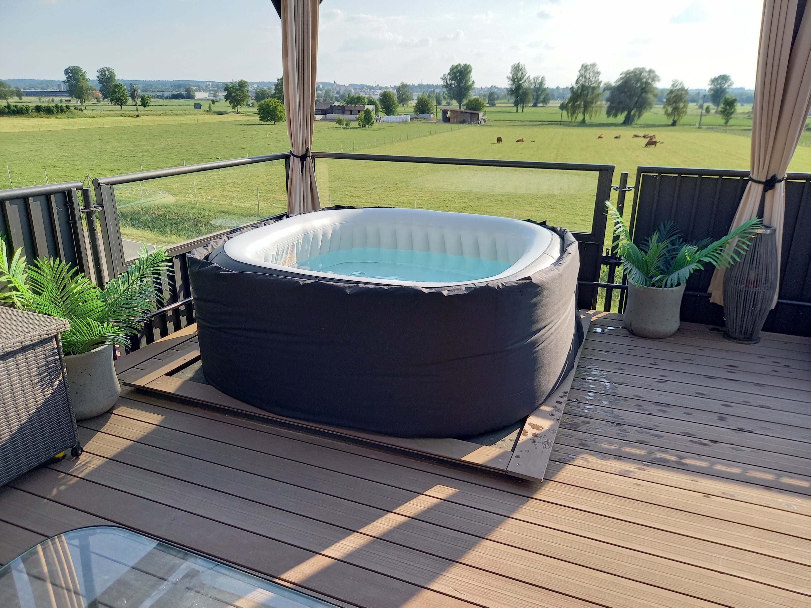 Unsere Wurzeln liegen in Bayern, unsere Produkte stehen in Gärten weltweit. Als wir Premium Pro Design gründeten, hatten wir ein simples, aber ehrgeiziges Ziel: Wir wollten die effizienteste und schönste Isolierungs-Lösung für aufblasbare Whirlpools auf den Markt bringen. Das bayrische Qualitätsversprechen – durchdacht, langlebig und wetterfest – ist bis heute die DNA jedes einzelnen unserer Produkte. Von unserem eigenen Garten direkt in deinen.